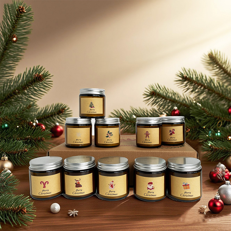 Ensemble de bougies parfumées en cire colorée pour bonbons de Noël avec logo personnalisé en cire de soja naturelle