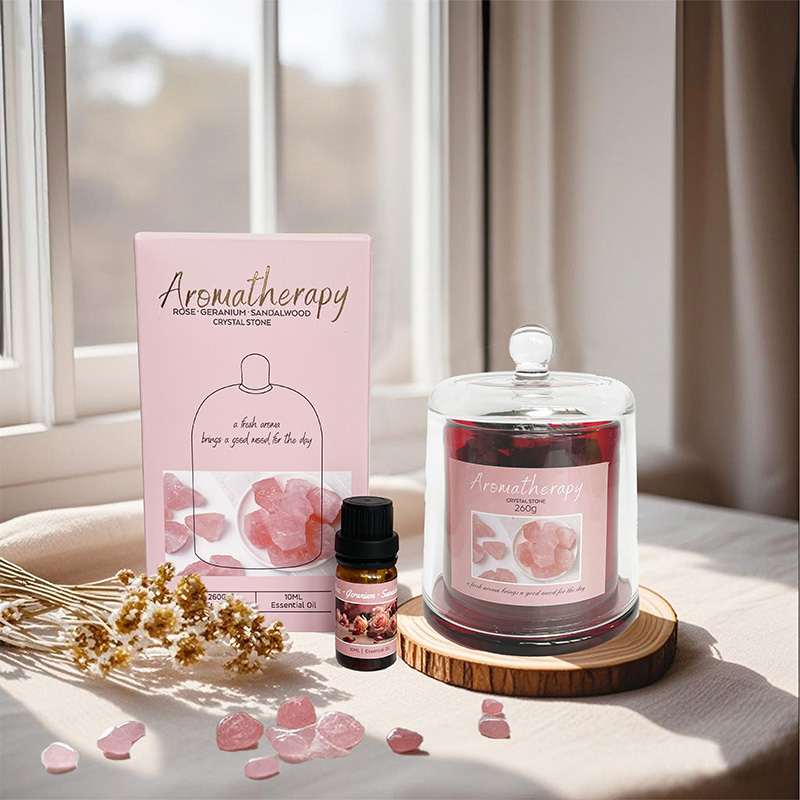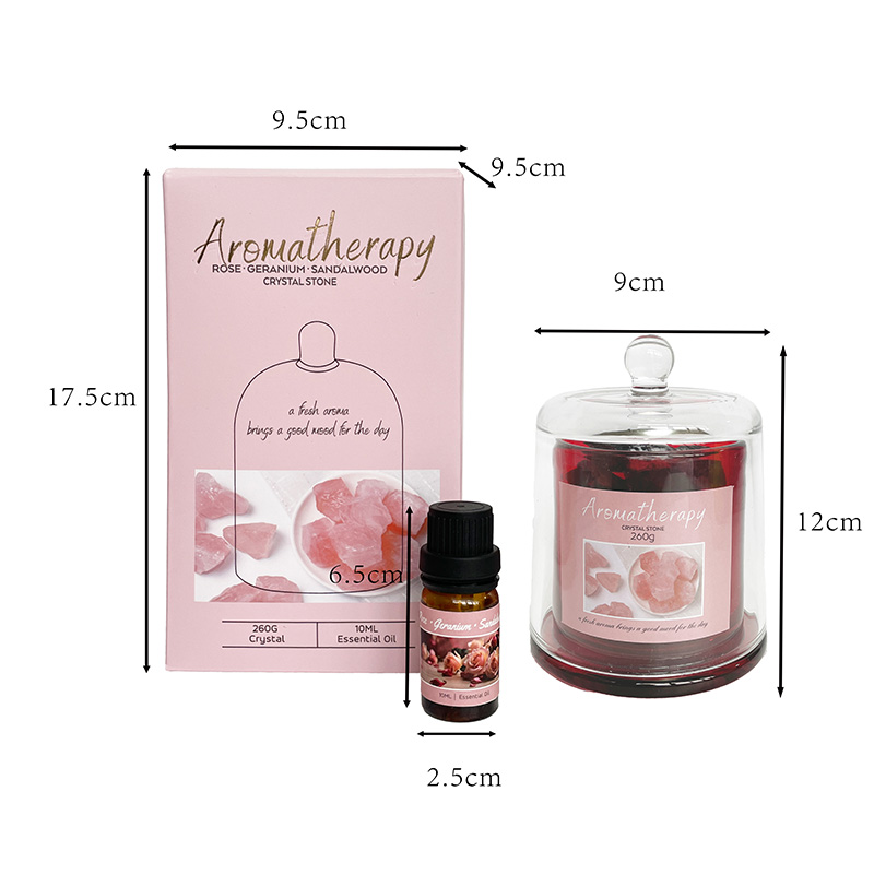 Le parfum se concentre principalement sur les parfums d'aide au sommeil et de guérison, tels que la lavande, le bois de santal ou le thé blanc. L'arôme doux et apaisant aide à détendre l'esprit et à améliorer la qualité du sommeil. Lors de l'utilisation, il suffit de déposer quelques gouttes d'huile essentielle sur les cristaux—ils absorberont naturellement l'huile et libéreront le parfum lentement. Aucun chauffage ni allumage n'est requis, ce qui le rend sûr et respectueux de l'environnement. Les cristaux sont disponibles dans une variété de couleurs riches, vous permettant de choisir et d'assortir selon vos préférences.