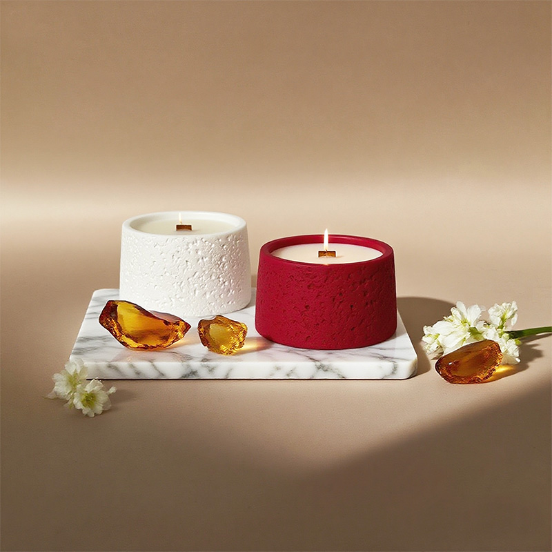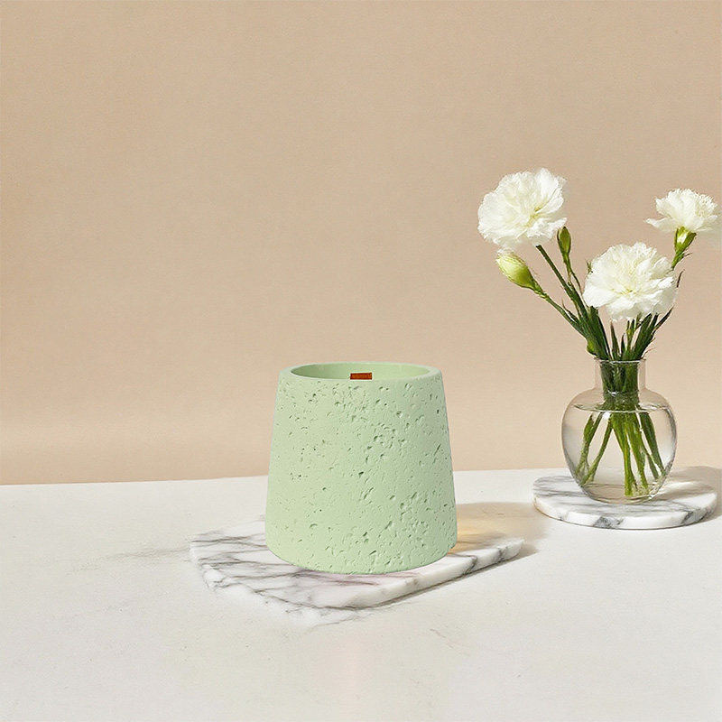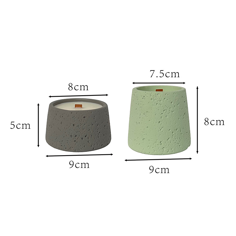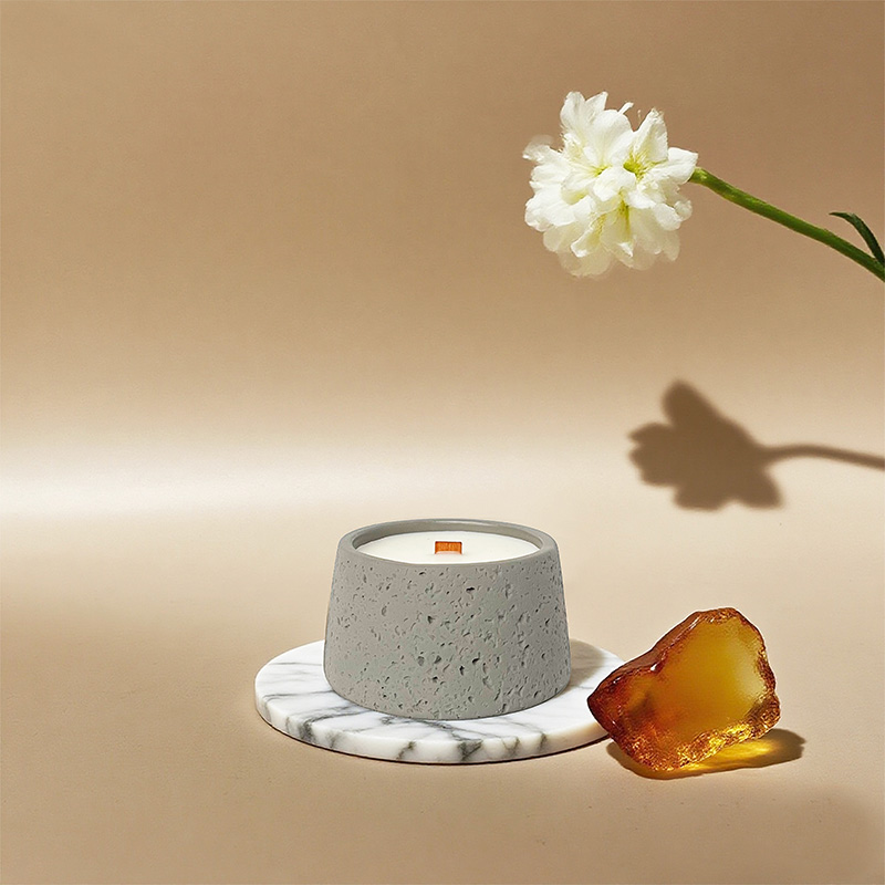 Cette bougie parfumée adopte hardiment du ciment de style industriel comme récipient, créant un contraste intéressant avec la douce cire de soja naturelle à l'intérieur et forgeant un style unique à la fois minimaliste et de niche. Deux spécifications sont disponibles : l'une a un poids net de 120 grammes, avec un gobelet en ciment mesurant 8 cm de diamètre supérieur, 9 cm de diamètre inférieur et 5 cm de hauteur ; l'autre a un poids net de 195 grammes, comportant un gobelet en ciment de 7,5 cm de diamètre supérieur, 9 cm de diamètre inférieur et 8 cm de hauteur. La texture rugueuse du ciment offre une expérience tactile unique et sa teinte calme dégage un fort sentiment d'art moderne.