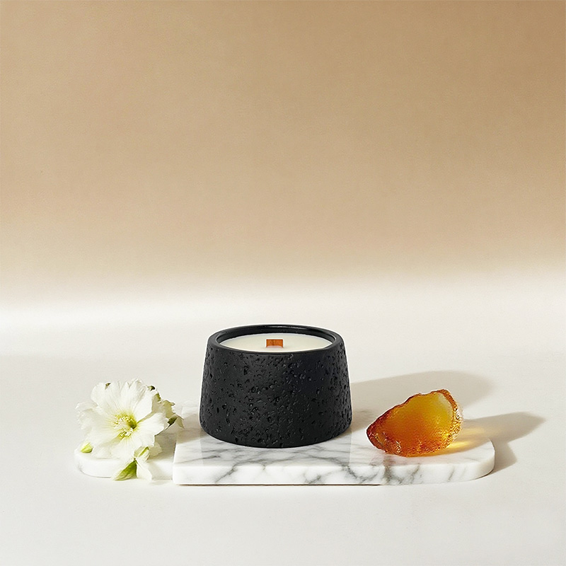 Le parfum est associé à des notes neutres et boisées—comme le parfum du béton, des minéraux post-pluie ou du bois sec. L'arôme est unique et incite à la réflexion ; lorsqu'il est allumé, il crée une atmosphère calme et sobre pleine de modernité. Il convient parfaitement aux studios, aux galeries d’art, aux maisons de style minimaliste ou aux consommateurs qui recherchent l’individualité. Une mèche en bois est utilisée pour brûler.