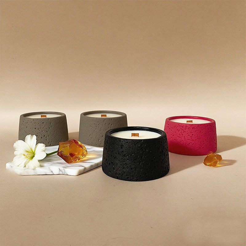 Bougie parfumée simple en pot de niche à texture cimentaire, cire de soja