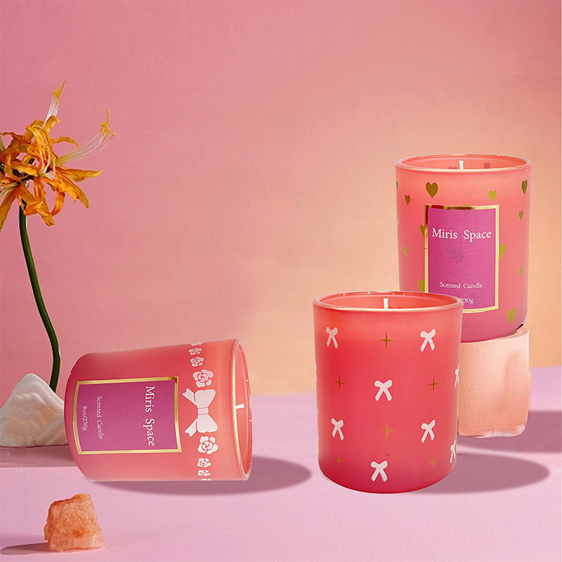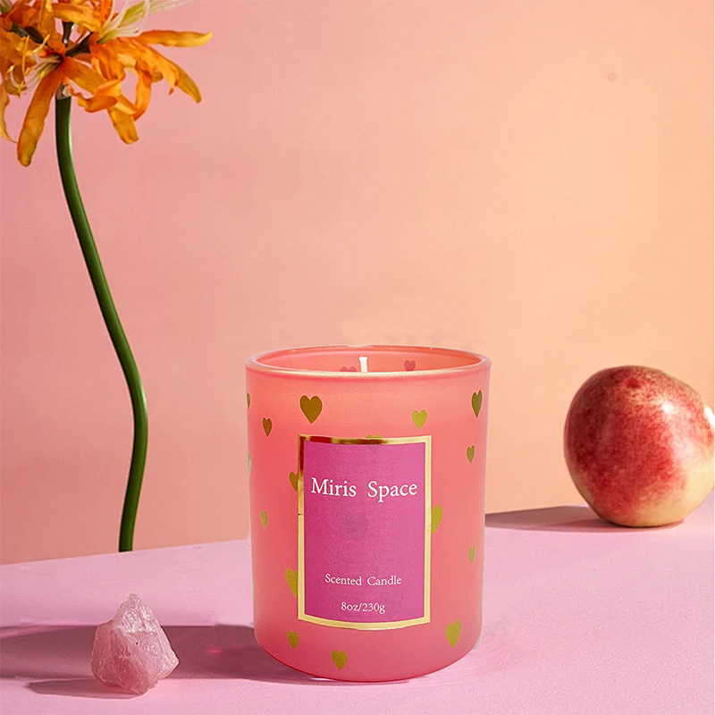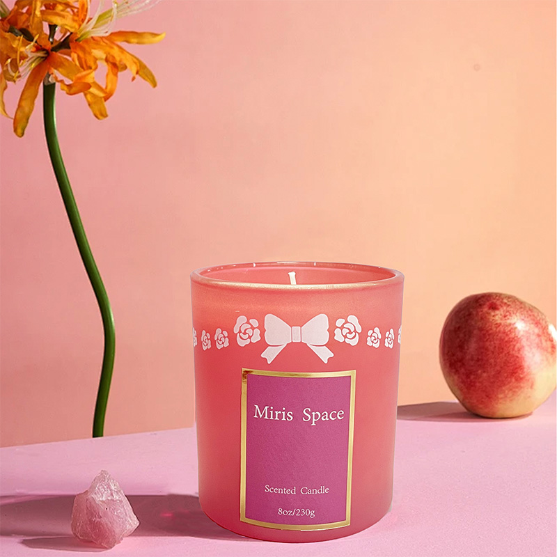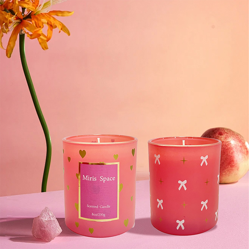 Bougie parfumée à rayures verticales roses pour la fête des mères Ambiance festive Cire de soja Logo personnalisé