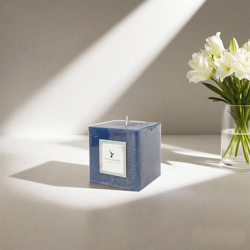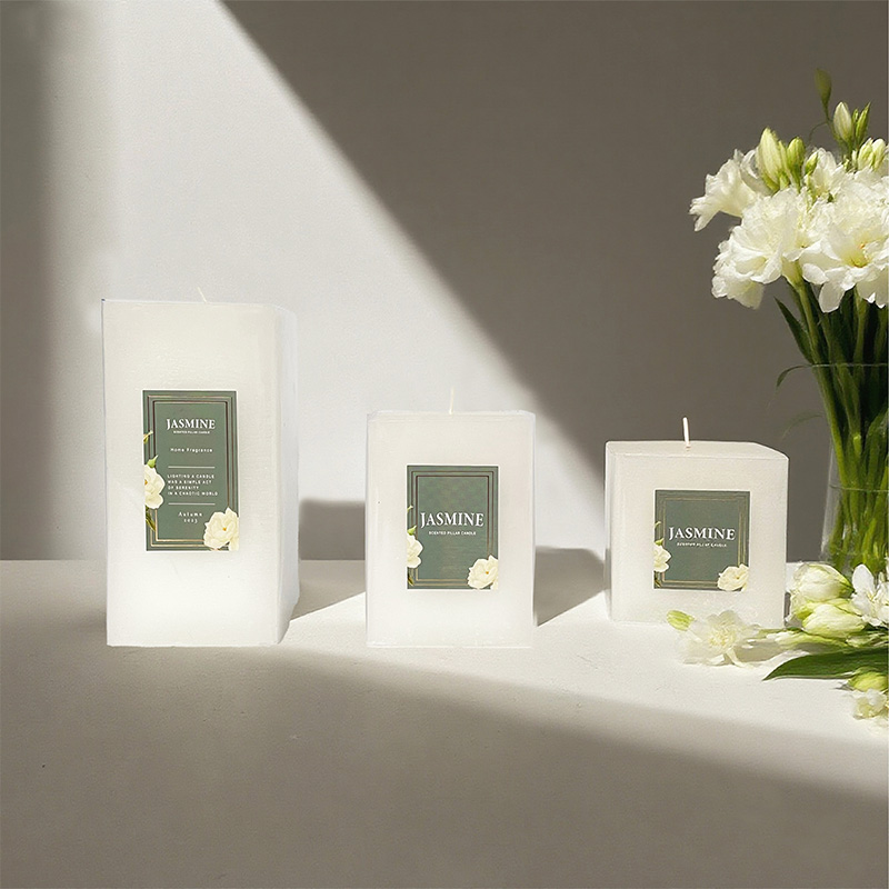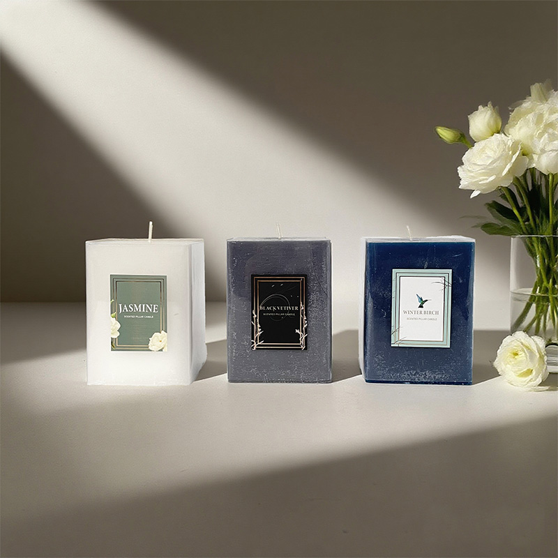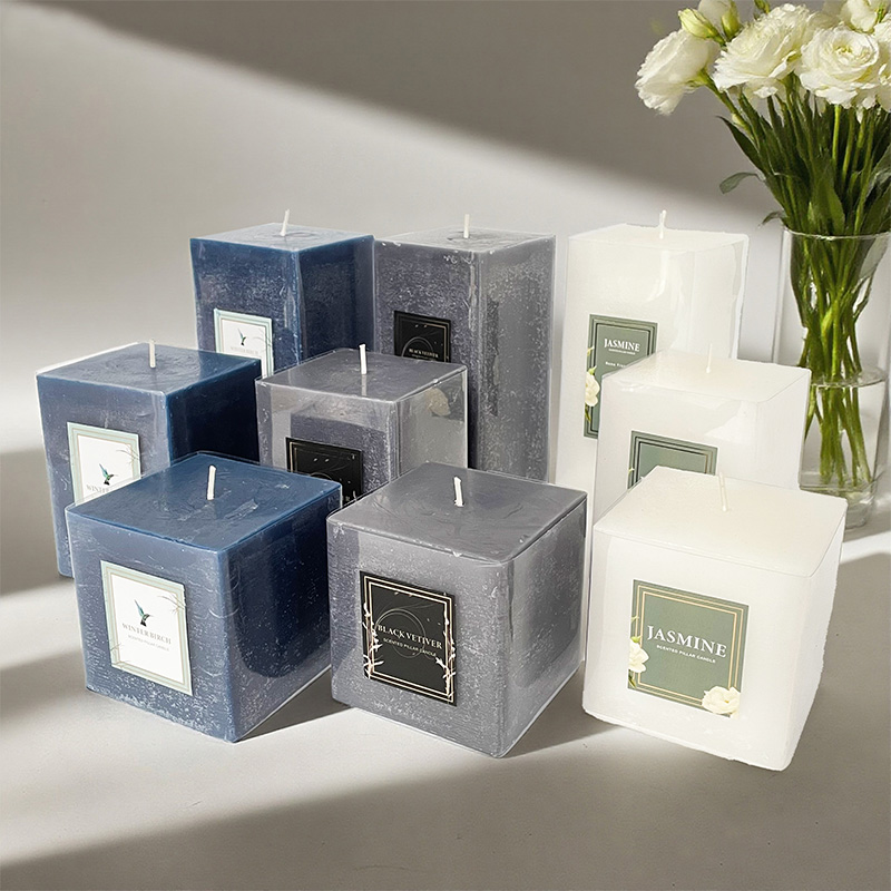 Bougie parfumée multi-tailles à pilier carré en cire de soja avec logo personnalisé