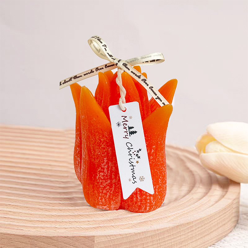Cette bougie parfumée s'inspire de la forme élégante des fleurs de tulipe, intégrant la beauté de la nature dans un produit parfumé. Fabriqué avec de la cire de soja naturelle et une mèche en coton, c'est un excellent article de gros qui allie valeur ornementale et praticité. La bougie a un poids net de 265 grammes, avec une forme réaliste —environ 8 cm de diamètre et 11 cm de hauteur. Il reproduit parfaitement la forme gracieuse d'une tulipe en bouton, servant de décoration artistique exquise même lorsqu'elle n'est pas éclairée.