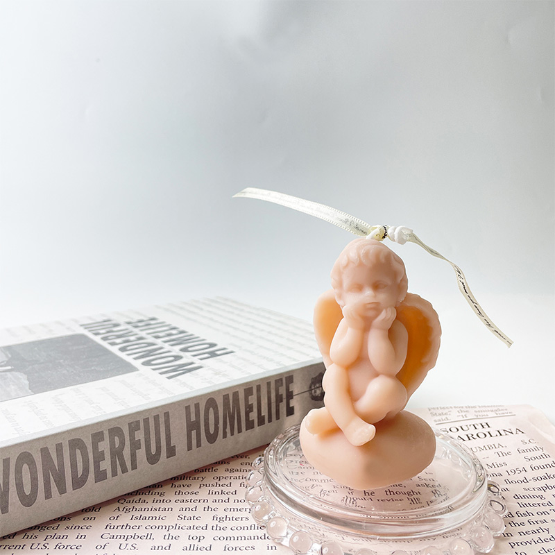 Bougie parfumée pilier faite à la main en chérubin ailé, cire de soja naturelle pure