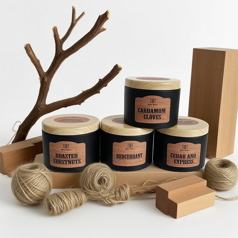 Cette bougie parfumée présente une texture calme et haut de gamme grâce à la combinaison classique de son pot en verre noir profond et de son couvercle en bois naturel. Le corps du pot est orné d'une étiquette réaliste en grain de bois, ce qui améliore encore la fusion des styles naturels et industriels. Deux spécifications sont disponibles au choix : l'une a un poids net de 93 grammes, avec un diamètre de 6,5 cm et une hauteur de 5 cm, présentant un design compact et exquis ; l'autre a un poids net de 172 grammes, mesurant 8 cm de diamètre et 6 cm de hauteur, offrant une sensation plus substantielle. Les deux versions sont fabriquées à partir de cire de soja 100 % naturelle, garantissant une combustion propre, le respect de l'environnement et la sécurité sanitaire.