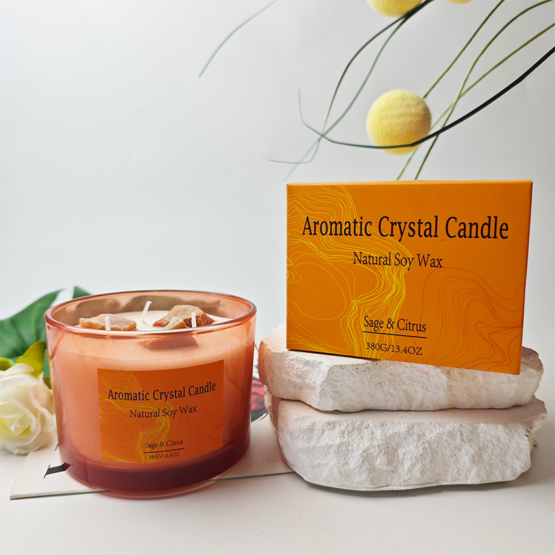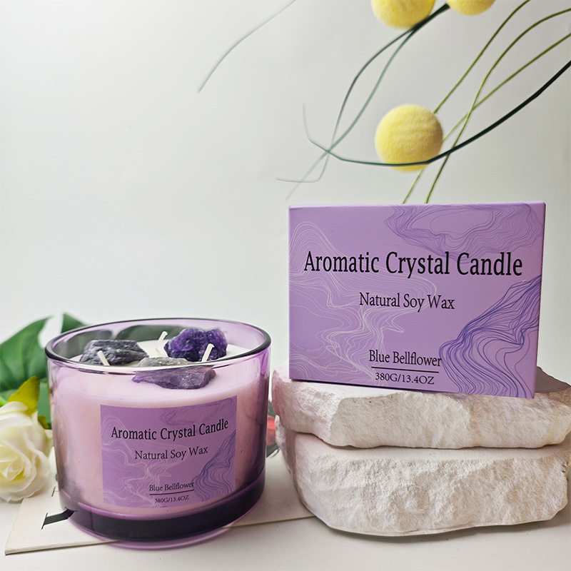 Bougie parfumée cicatrisante aux cristaux colorés pour usage domestique, parfum longue durée avec cire de soja naturelle