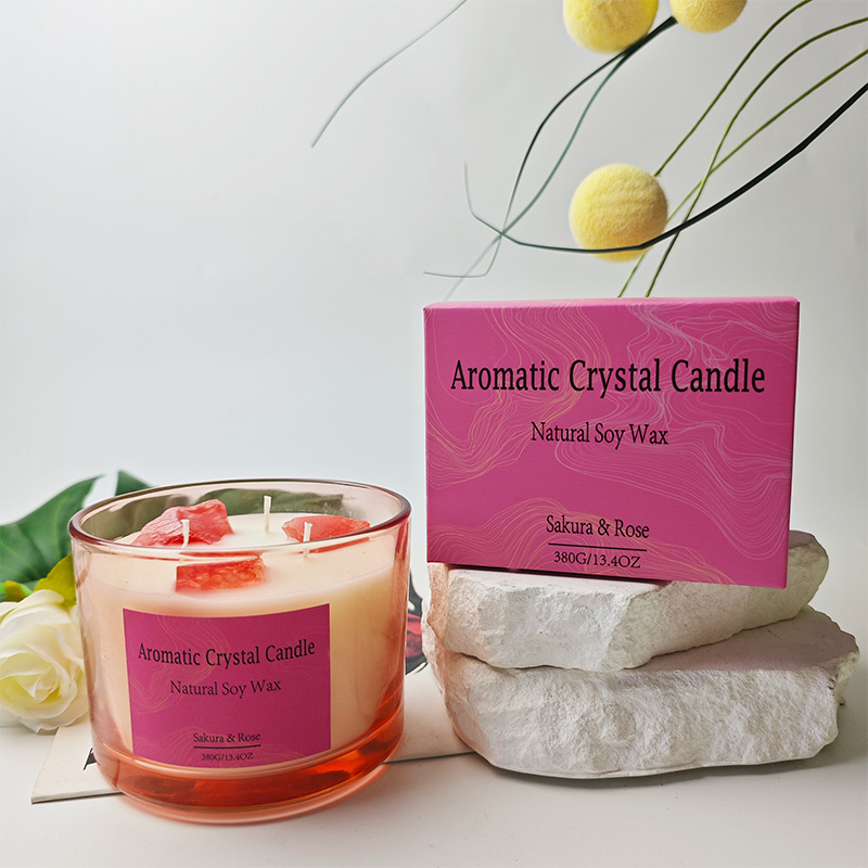 Bougie parfumée cicatrisante aux fleurs séchées en cristal, apaisante et relaxante, cire de soja naturelle, logo personnalisé