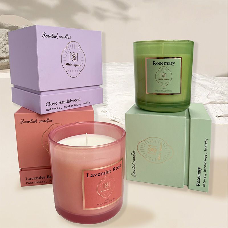 Bougie parfumée à imprimé de couleur carrée avec logo personnalisé privé en cire de soja naturelle