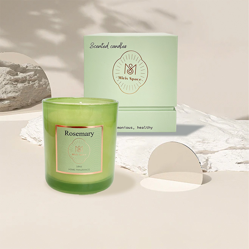 Bougie parfumée à la cire de soja en verre vert naturel – Logo personnalisé disponible