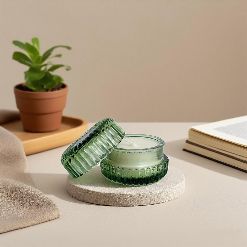 Bougie parfumée à la cire de soja en verre vert naturel – Logo personnalisé disponible