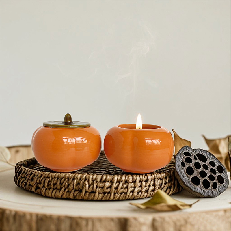 Inspirée de la forme unique et nouvelle du kaki, cette bougie parfumée intègre une nouvelle esthétique chinoise et est méticuleusement fabriquée à la main à partir de cire de soja naturelle pure. Cela implique que « tout se passe comme souhaité » dans la culture chinoise, ce qui la rend non seulement visuellement attrayante mais aussi pleine de belles bénédictions. Avec un poids net de 125 grammes, la bougie présente une forme exquise, mesurant environ 8,5 cm de diamètre et 5 cm de hauteur. Installé dans une tasse en céramique à la texture chaude, il présente parfaitement la forme vive d'un kaki et la délicate couleur de glaçure, servant d'article parfumé artistique alliant valeur ornementale et pratique.