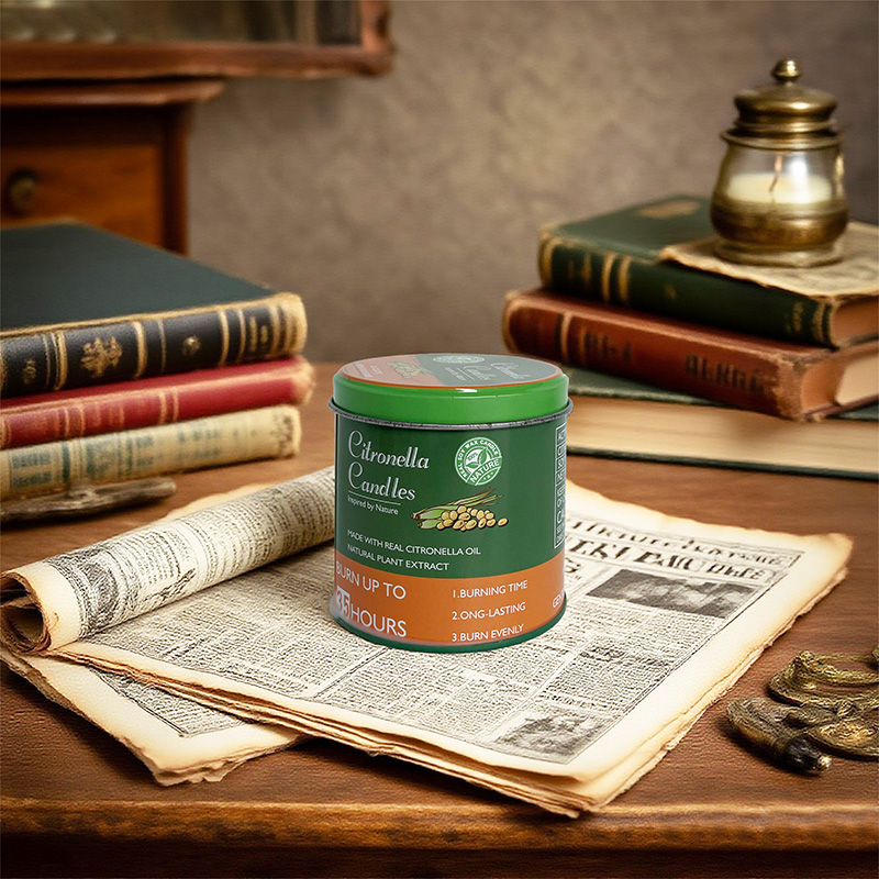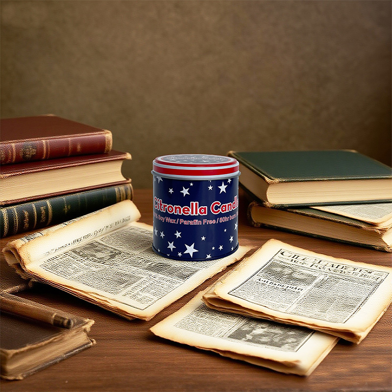 Cette bougie parfumée s'inspire du design rétro américain classique. Son emballage en boîte de conserve dégage une forte ambiance nostalgique et il est fabriqué avec de la cire de soja naturelle et une mèche en coton, ce qui en fait un produit au style distinct. La bougie a un poids net de 170 grammes et est livrée dans une boîte de conserve mesurant 7,5 cm de diamètre et 7,8 cm de hauteur. Le design de la canette imite les pots de peinture rétro et les affiches publicitaires à l'ancienne, avec des couleurs riches et vives pleines de charme intemporel.