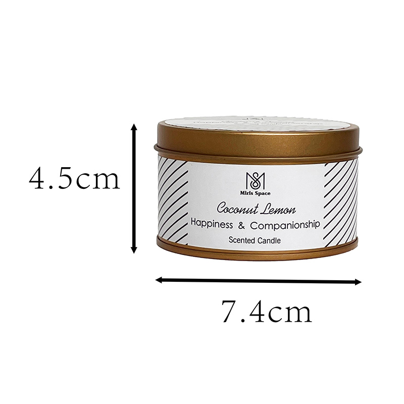 Centrée sur le design de lignes géométriques modernes et élégantes et d'une boîte de conserve dorée brillante, cette bougie parfumée est remplie de cire de soja naturelle, créant une expérience de parfum légère, luxueuse et à la mode. La bougie a un poids net de 138 grammes et est contenue dans une boîte de conserve mesurant 7,4 cm de diamètre et 4,5 cm de hauteur. Les lignes géométriques du corps de la canette dessinent une silhouette soignée, tandis que le matériau doré ajoute une touche de luxe et de vitalité—, ce qui le rend particulièrement adapté à l'embellissement de maisons de style moderne ou d'espaces commerciaux.