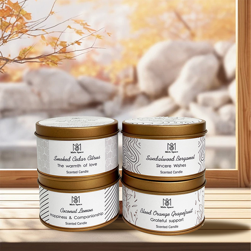 Étiquette de palette de couleurs Morandi Bougie parfumée en étain Logo personnalisé