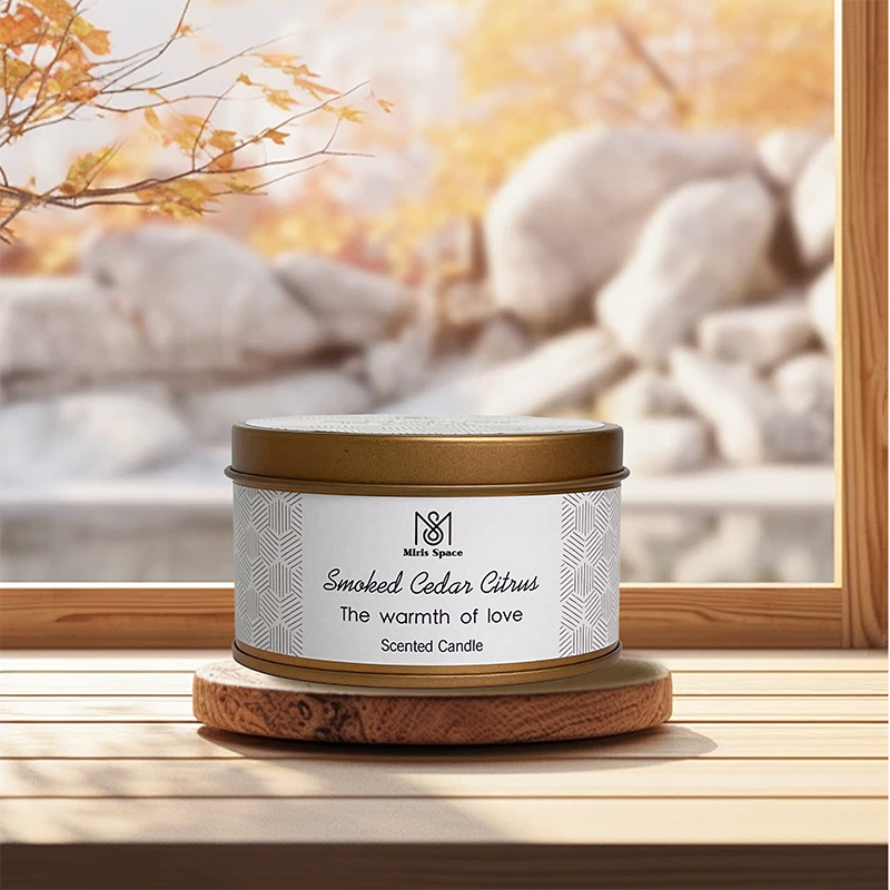 Bougie parfumée en étain Woody Scent de qualité supérieure, cire de soja